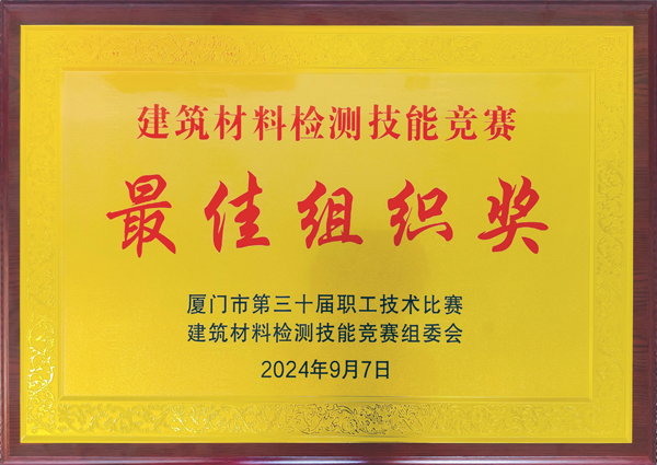 廈門市第三十屆職工技術(shù)比賽建筑材料檢測(cè)技能競(jìng)賽獲評(píng)“建筑材料檢測(cè)技能競(jìng)賽最佳組織獎(jiǎng)”