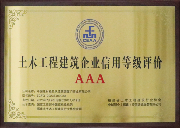 土木工程建筑企業(yè)信用等級(jí)評(píng)價(jià)AAA