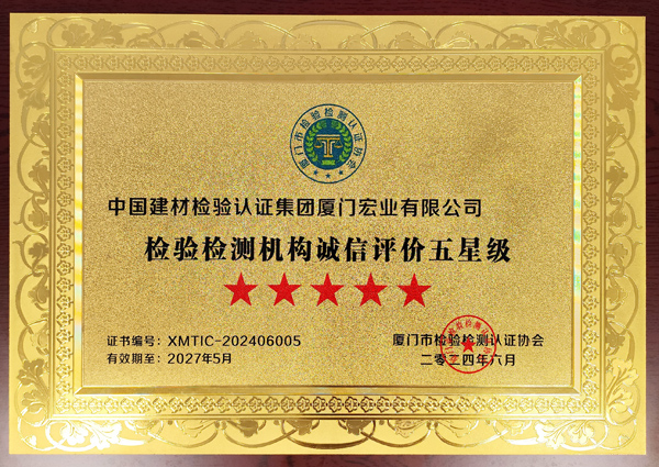 廈門市檢驗(yàn)檢測(cè)機(jī)構(gòu)誠(chéng)信評(píng)價(jià)五星級(jí)企業(yè)