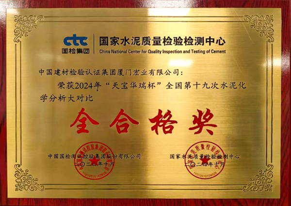 2024年“天寶華瑞杯”全國(guó)第十九次水泥化學(xué)分析大對(duì)比全合格獎(jiǎng)