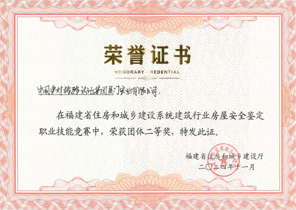 福建省住房和城鄉(xiāng)建設(shè)系統(tǒng)建筑行業(yè)房屋安全鑒定職業(yè)技能競(jìng)賽“團(tuán)體二等獎(jiǎng)”